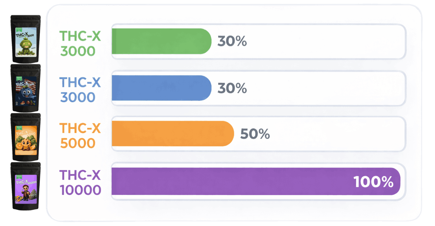 Eine übersichtliche Gegenüberstellung der einzelnen THC-X Varianten für eine schnelle Orientierung im Sortiment.